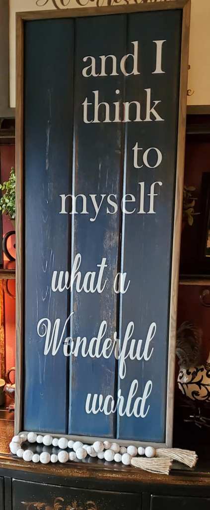 Family wood signs are most effective when they are combined with extra inspiration and sentiment in your house. What a Wonderful World is a song written by Bob Theile and George David Weiss. It was first recorded by Louis Armstrong and released in 1967 as a single. When you hear this song it just makes you feel good hence why it would make a wonderful sign for your home.